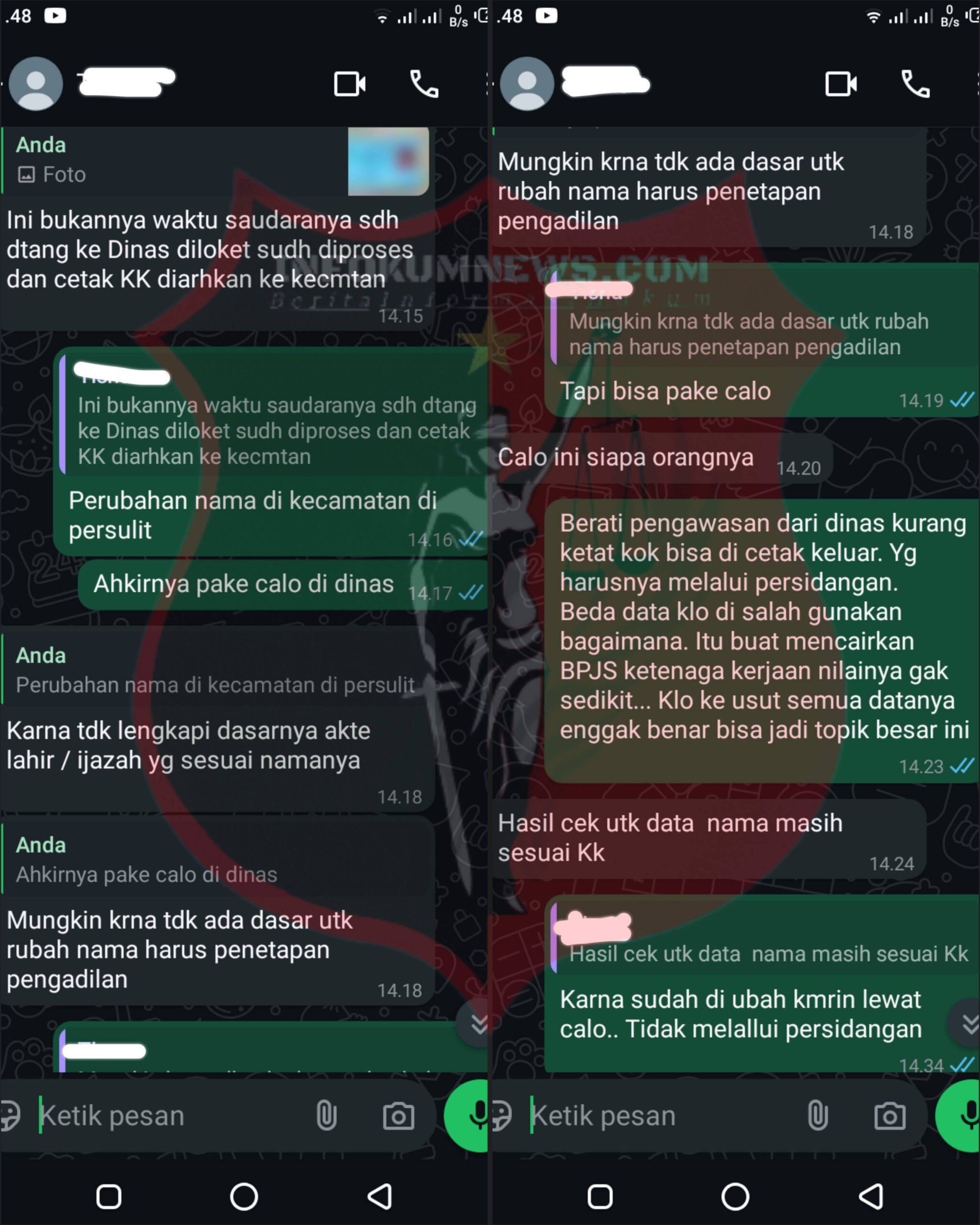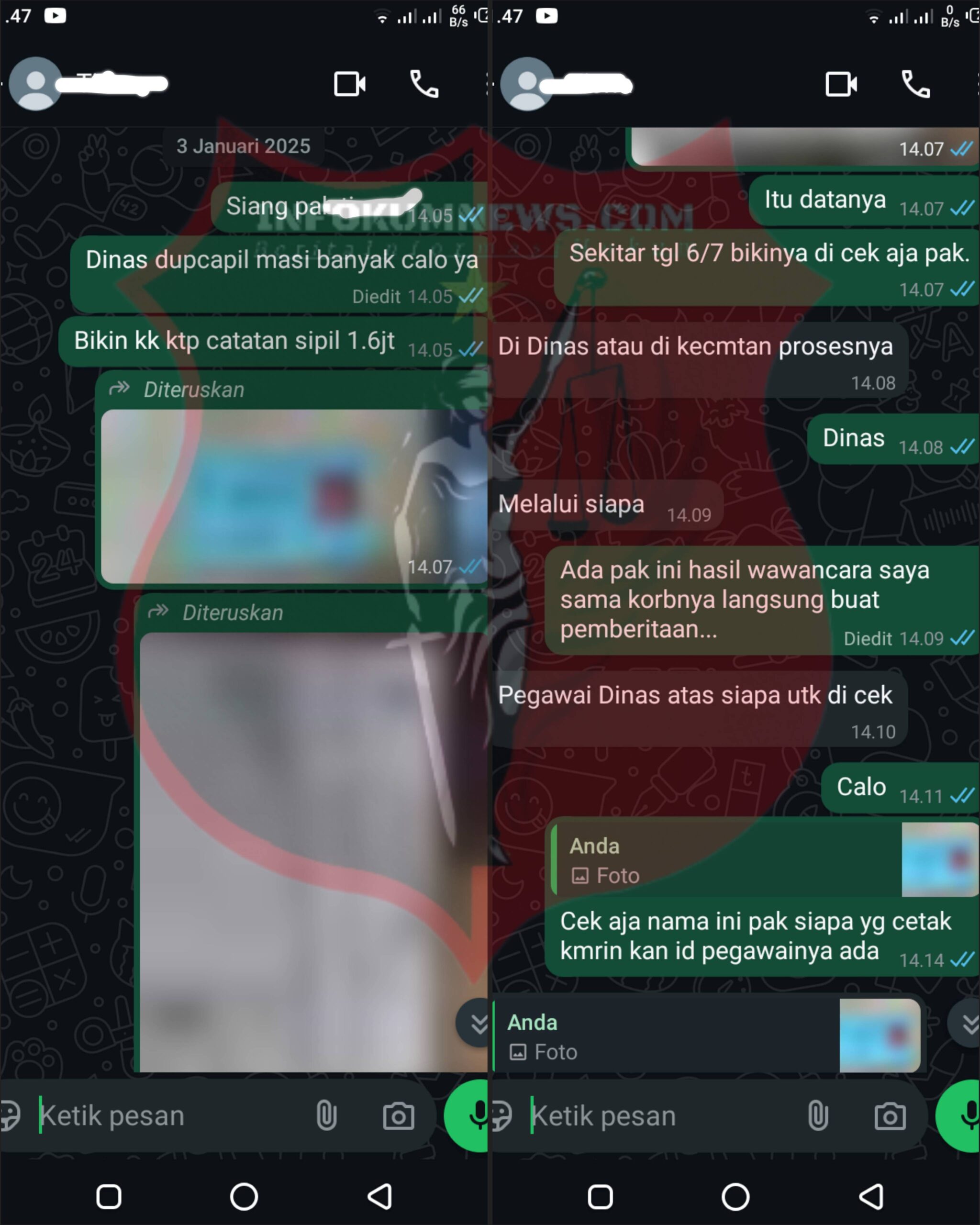 5. Bahwa chat whatsapp yang diberitakan adalah konfirmasi pihak media pada bulan Januari 2025 sementara pemberitaan ditayangkan pada bulan Mei 2025 sehingga untuk memastikan penelusuran peristiwa dengan jangka waktu yang sudah melebihi tiga bulan dan informasi terkait kronologis kejadian yang bisa ditelusuri tidak cukup jelas. Tim PPNS Disdukcapil akan melakukan tindak lanjut setelah menemukan bukti-bukti terkait, untuk selanjutnya dipastikan akan dilakukan tindakan tegas terhadap oknum yang terlibat.